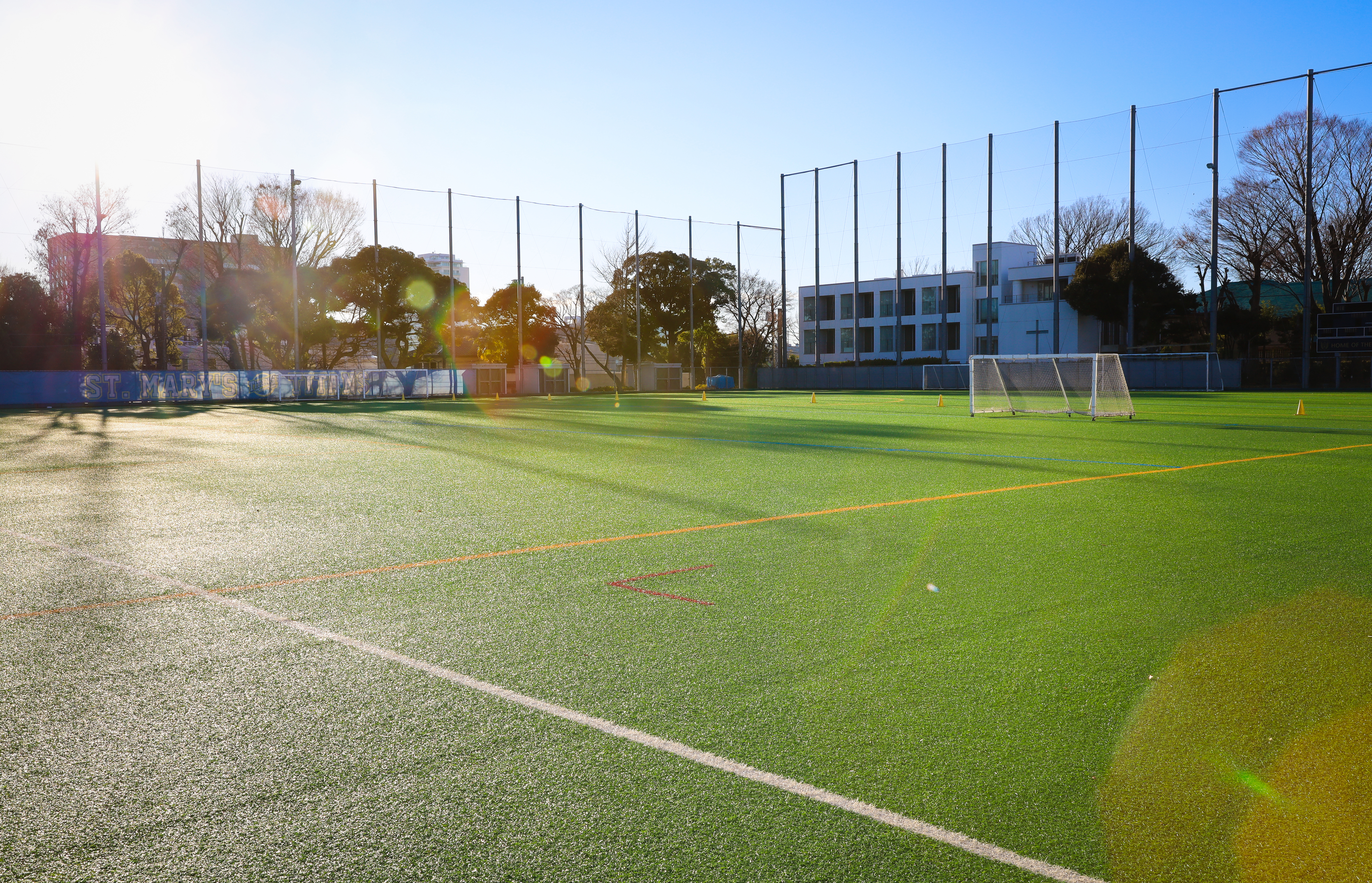 • Rebuilt in 2009, our campus includes solar panels and is one of Tokyo's safest buildings. Facilities feature modern classrooms, a 25-meter swimming pool, a cafeteria, a gymnasium, tennis courts, a soccer field, a theater, and playgrounds.